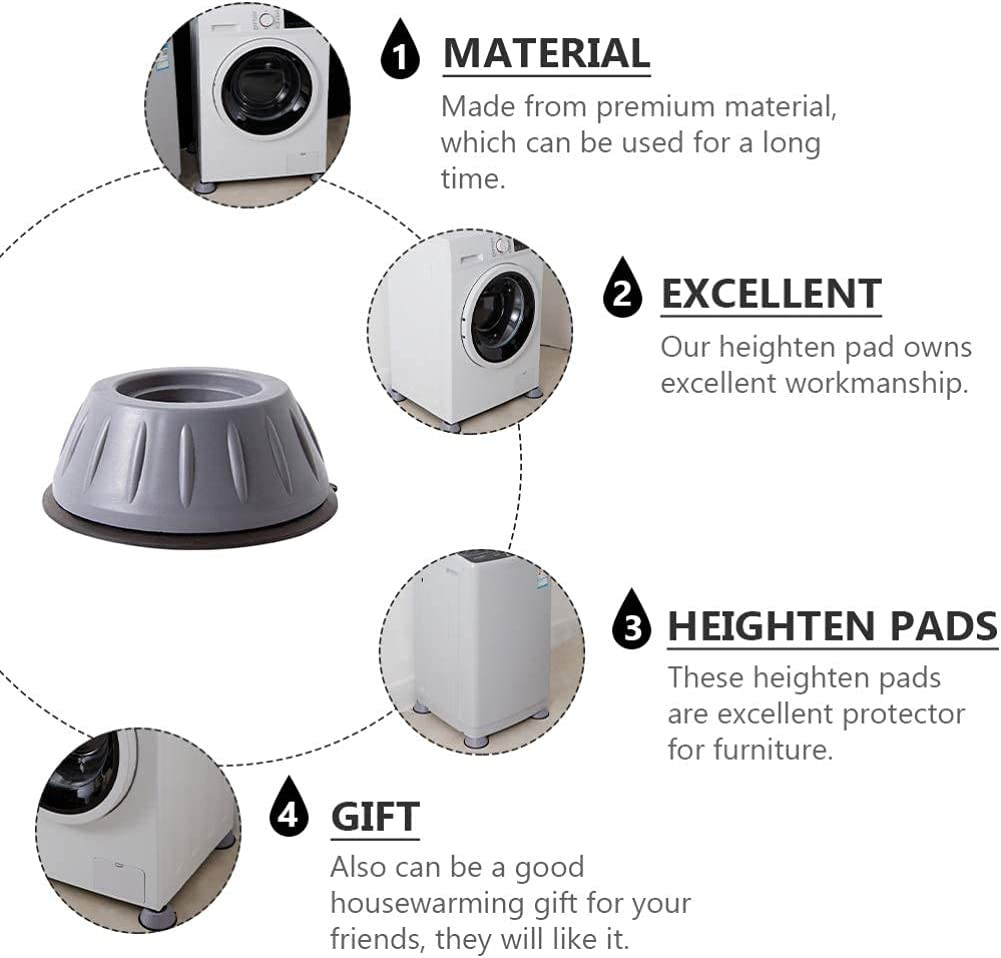 قاعدة مضادة للاهتزاز ومقاومة للصدمات بقواعد تثبت بالشفط لرفع الغسالة ومجفف الملابس وقطع الأثاث مكونة من 4 قطع