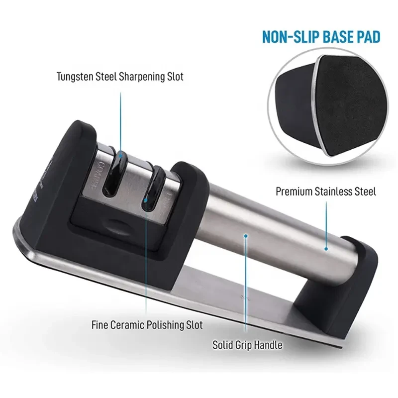 تحتوي على عجلة ماسية للسن الخشن وعجلة سيراميك لسن السكاكين بدقة